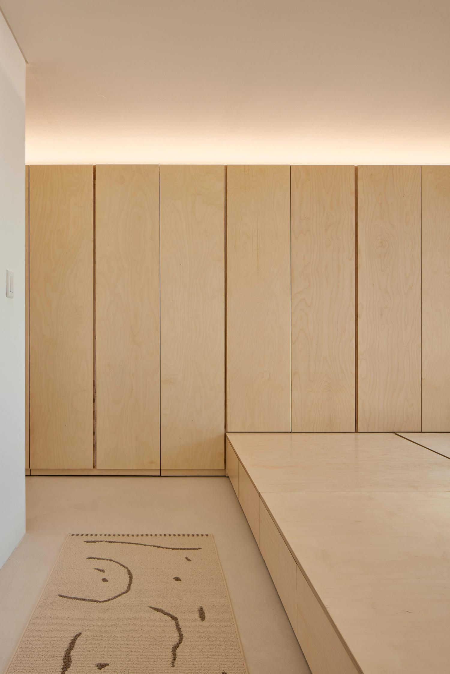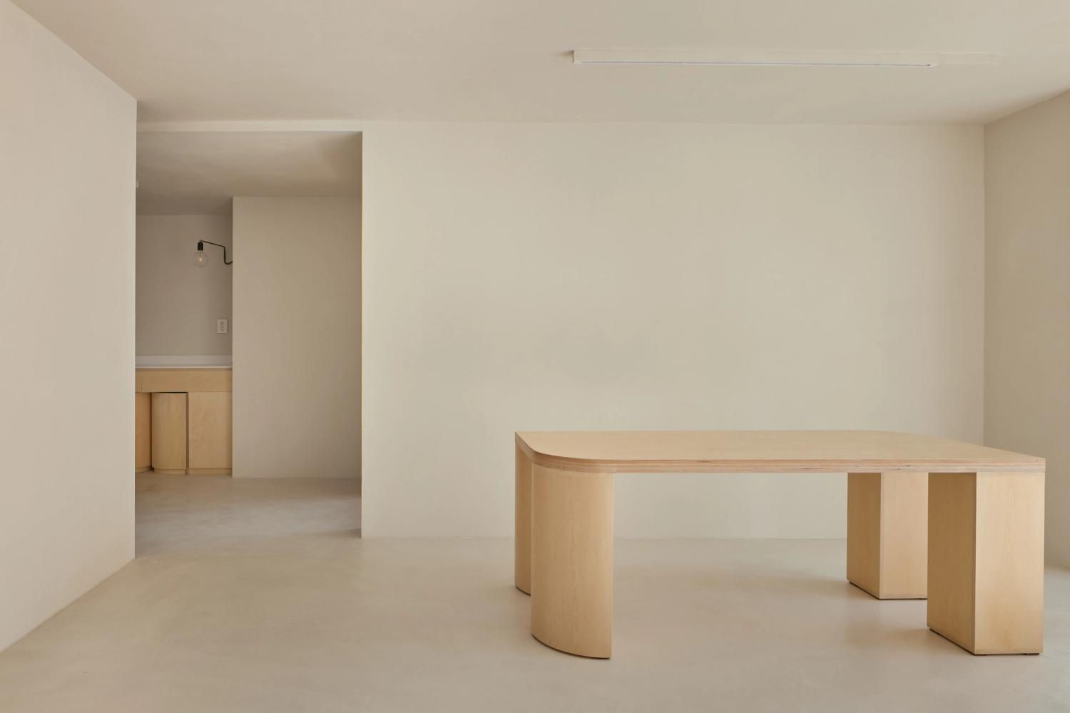 Renovation of a three-bedroom apartment for a newlywed couple. Meticulous use of a minimal material palette establishes a serene backdrop, inviting warmth into the space. The bespoke family of furniture expresses pure geometrical forms and materials, which echoes the essence of ‘family’ despite serving diverse functions. Photographed by Roh Kyung
