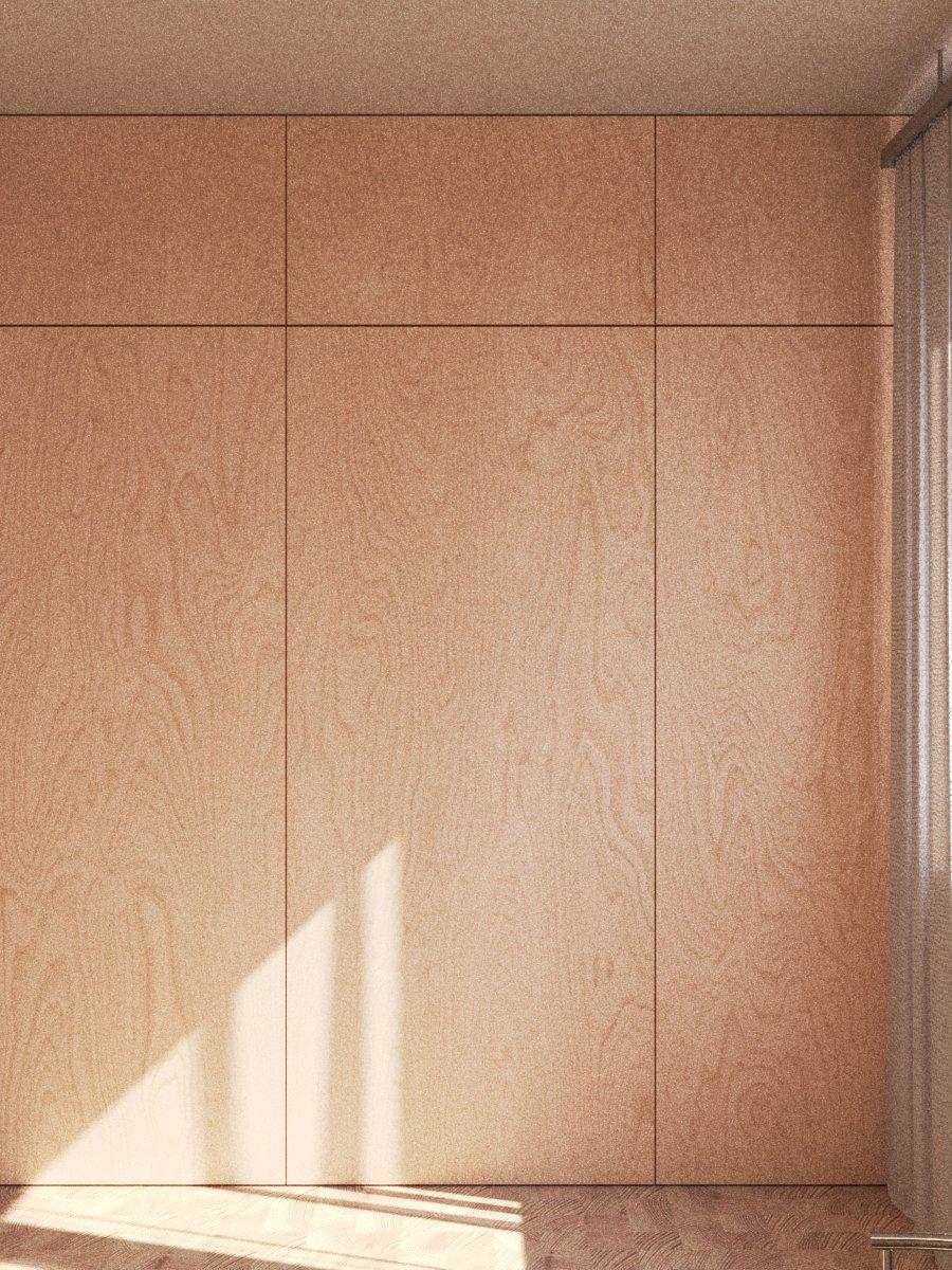 Doors are either seamlessly integrated into the partitions or finished in matching plywood or mirror polished stainless steel. When closed, they either blend into the surrounding surfaces or reflect the space around them, minimizing visual interruptions and amplifying the feeling of spaciousness.