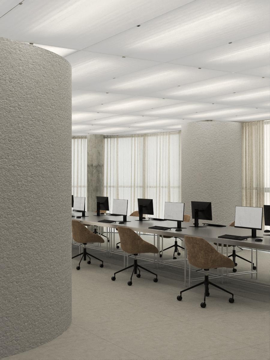 The result is a workspace that challenges perception, with a second sky appearing within the building and unexpected pockets of space forming naturally through the interplay of volumes. This approach not only enhances the spatial experience but also reflects the company‘s forward-thinking and innovative spirit.