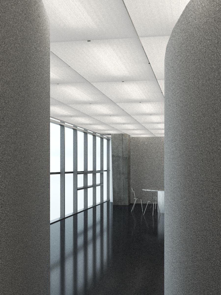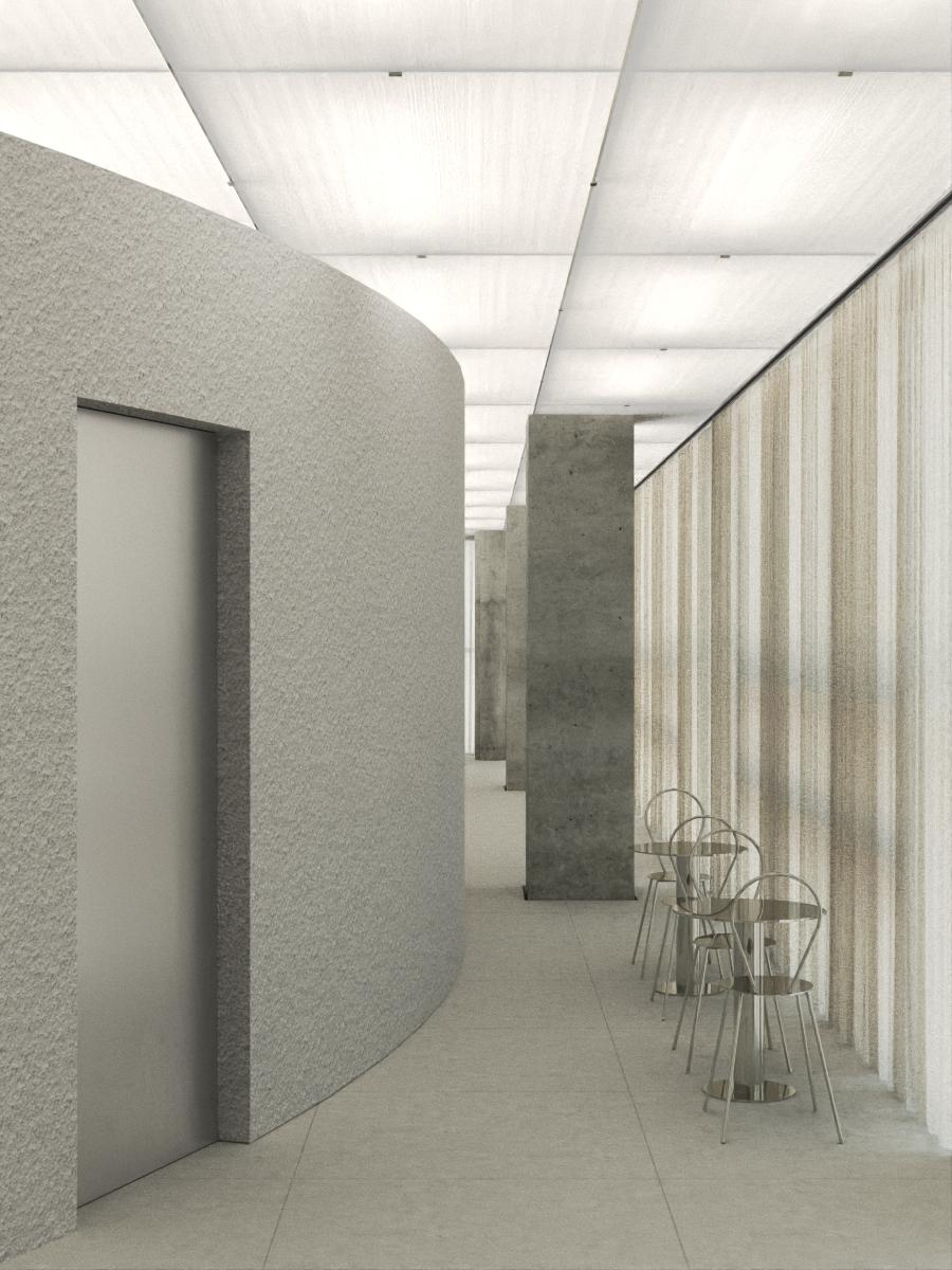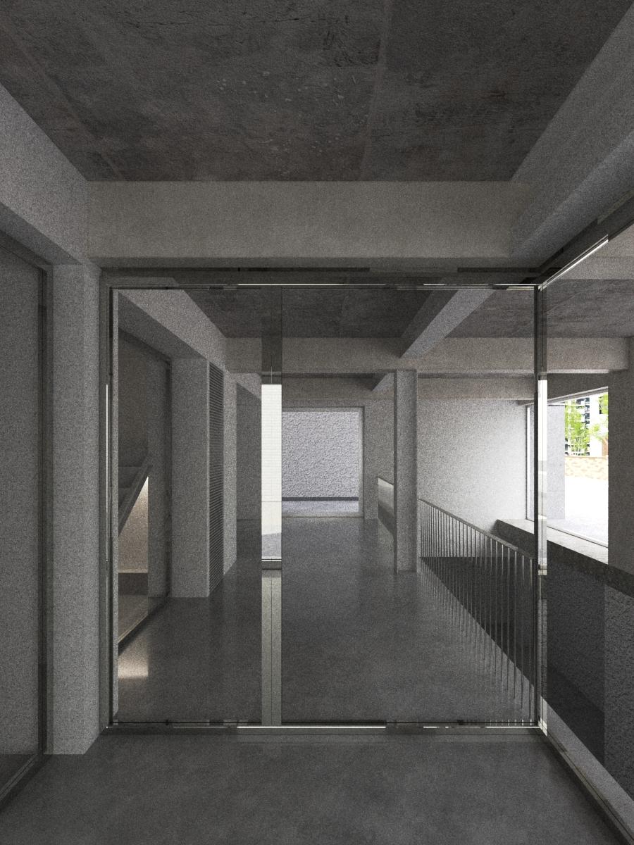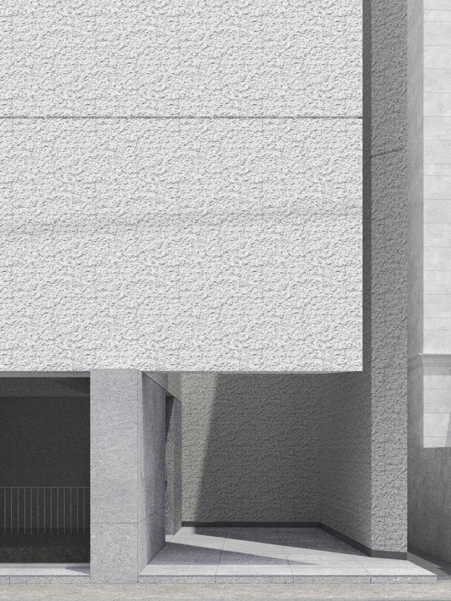 Along the street frontage, a sequence of framed glazed openings at ground level invites views into a large internal void—drawing the gaze downward and offering a glimpse into the reimagined interior. Entry is marked by a slender, five-storey-high vertical slit that cuts through the façade, naturally pulling visitors inward and upward through its dramatic scale and proportion.