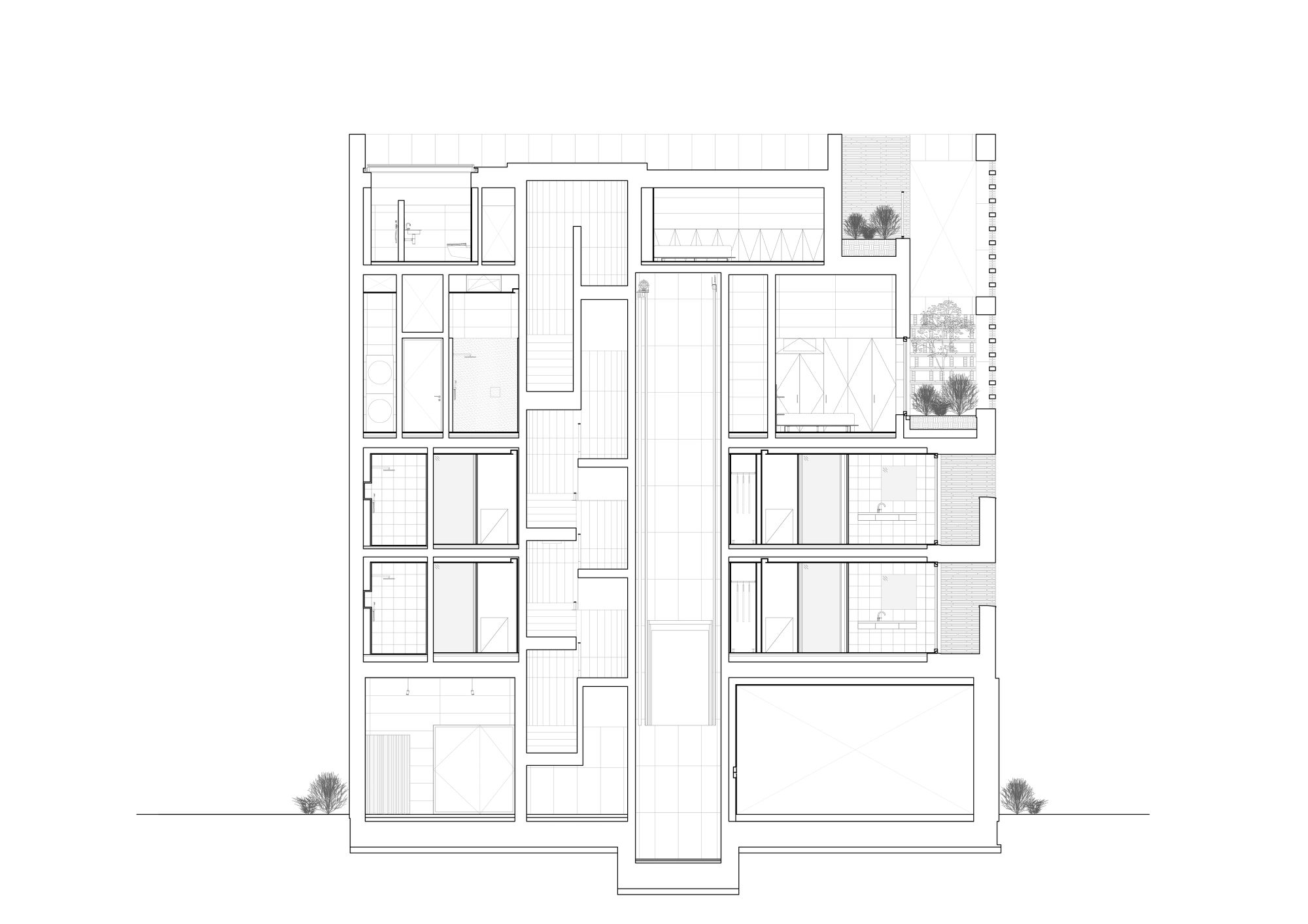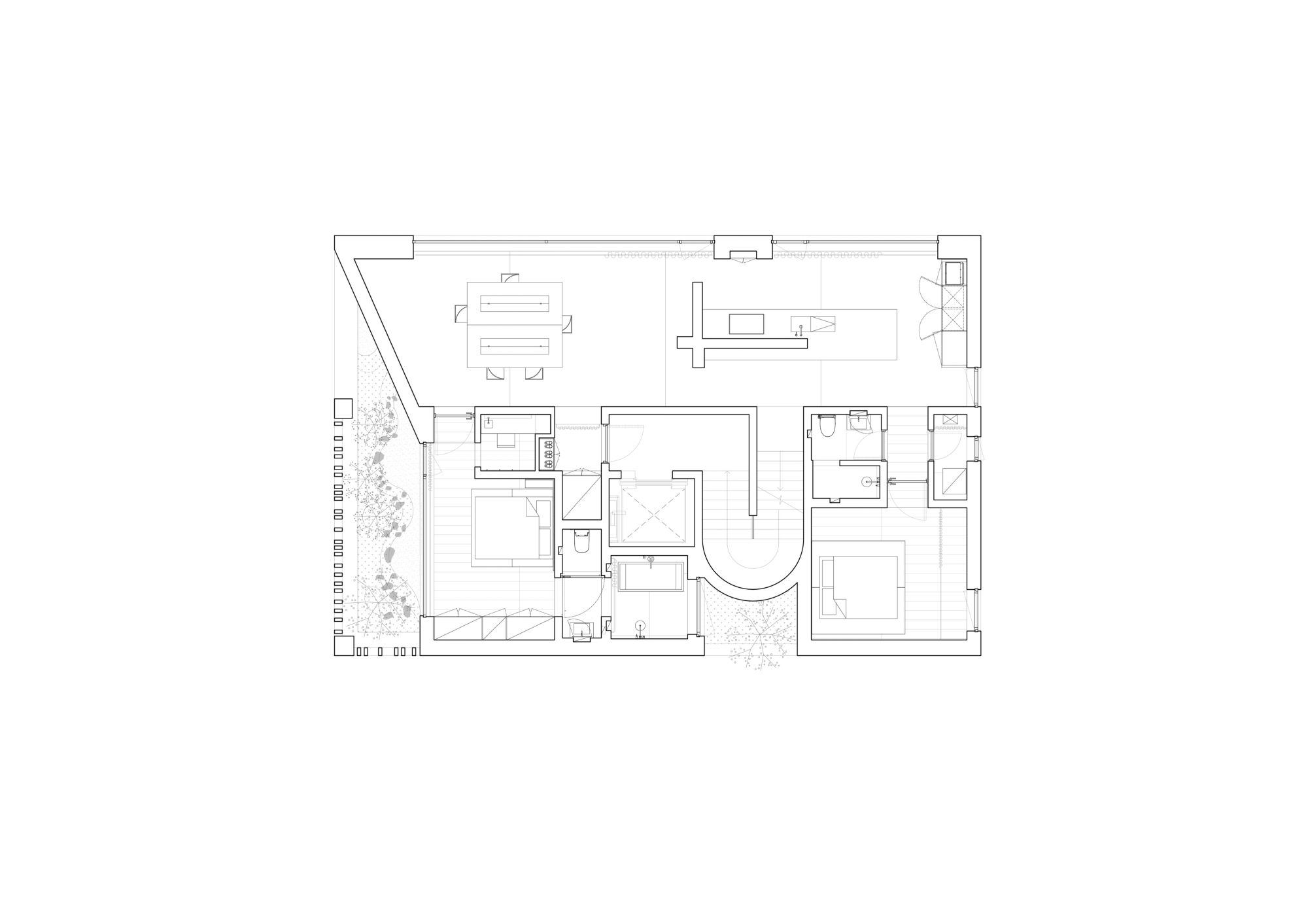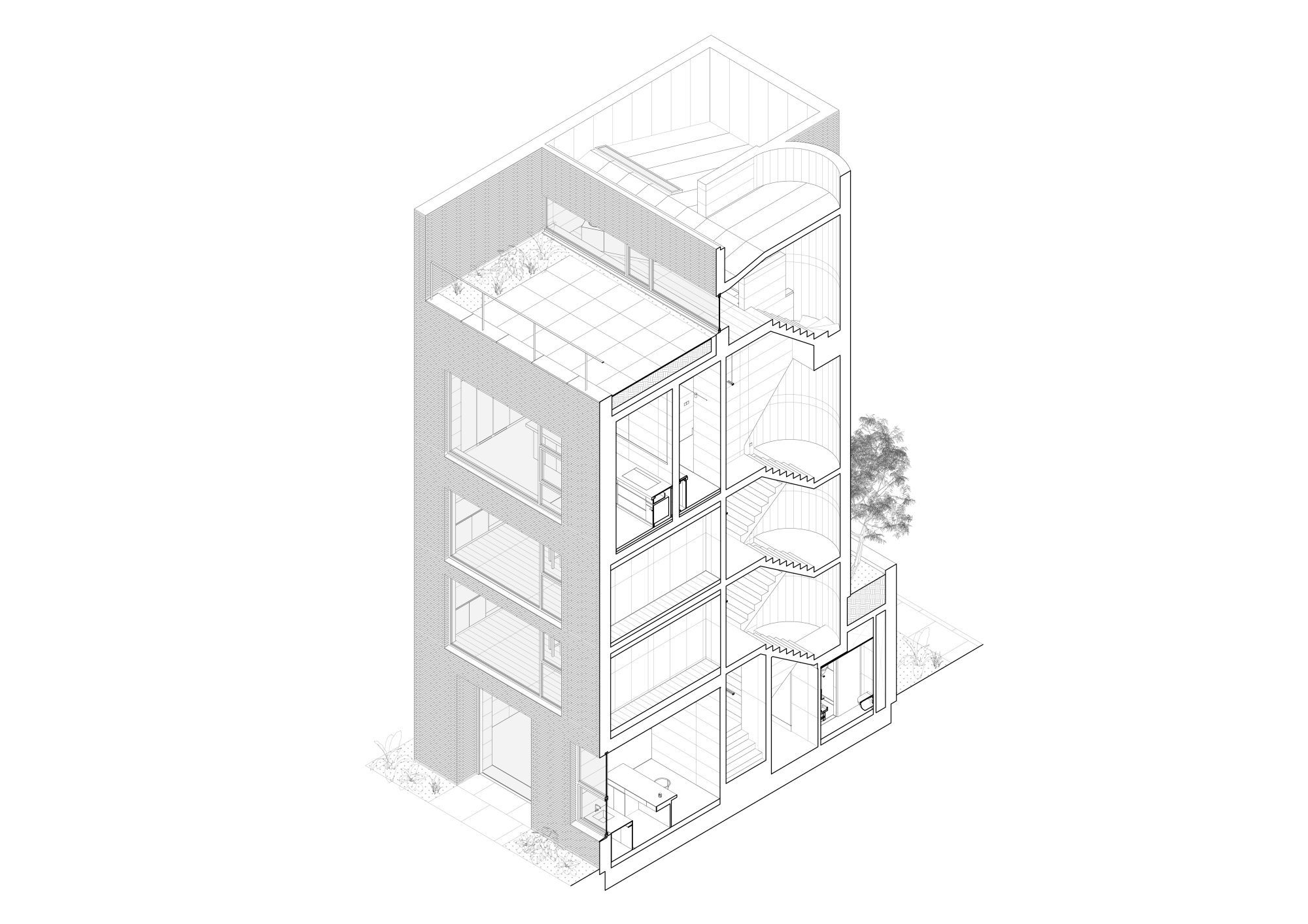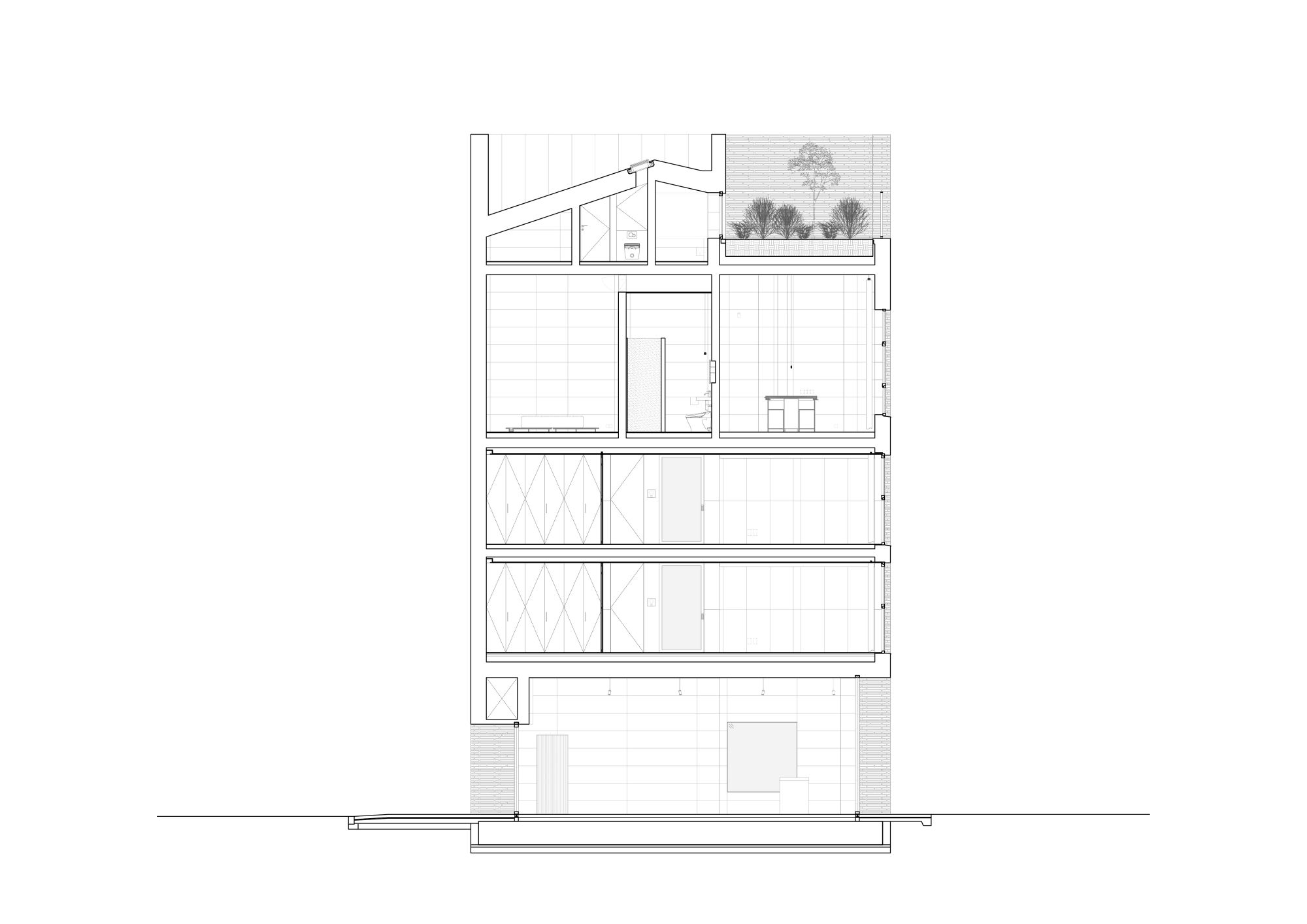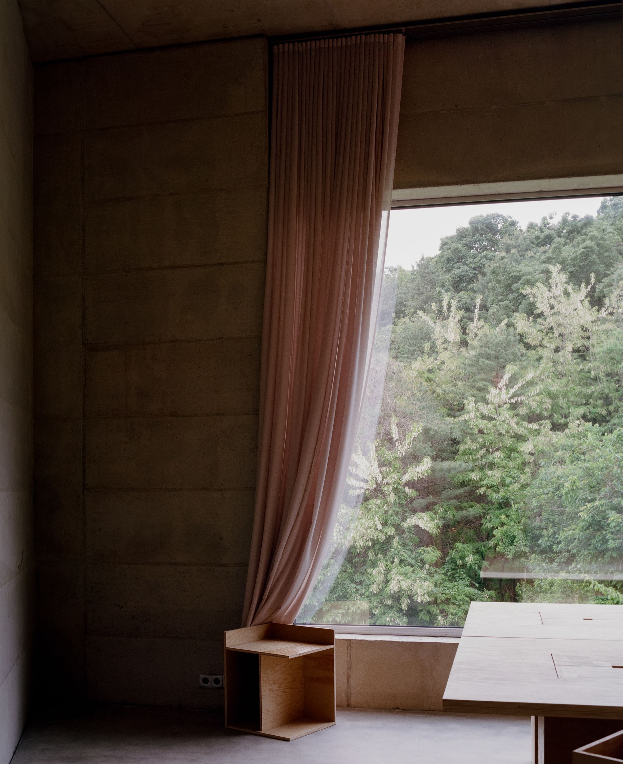 Raw House is a mixed-use development located on the East side of Seoul, South Korea, designed to harmonize with its natural and urban surroundings. The project includes an office, residential flats, and a penthouse. Its southern façade frames expansive views of the surrounding lush foliage, inviting nature into the interiors, while the northern façade takes a more reserved approach, creating a buffer from the street. This contrast highlights the project’s tectonic design, with the bold materiality and clean lines establishing a strong architectural presence that balances openness and privacy.